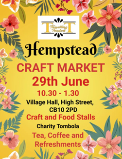 In the Village Hall on Sat 29th June from 10.30am with a wide variety of crafts and food to purchase.